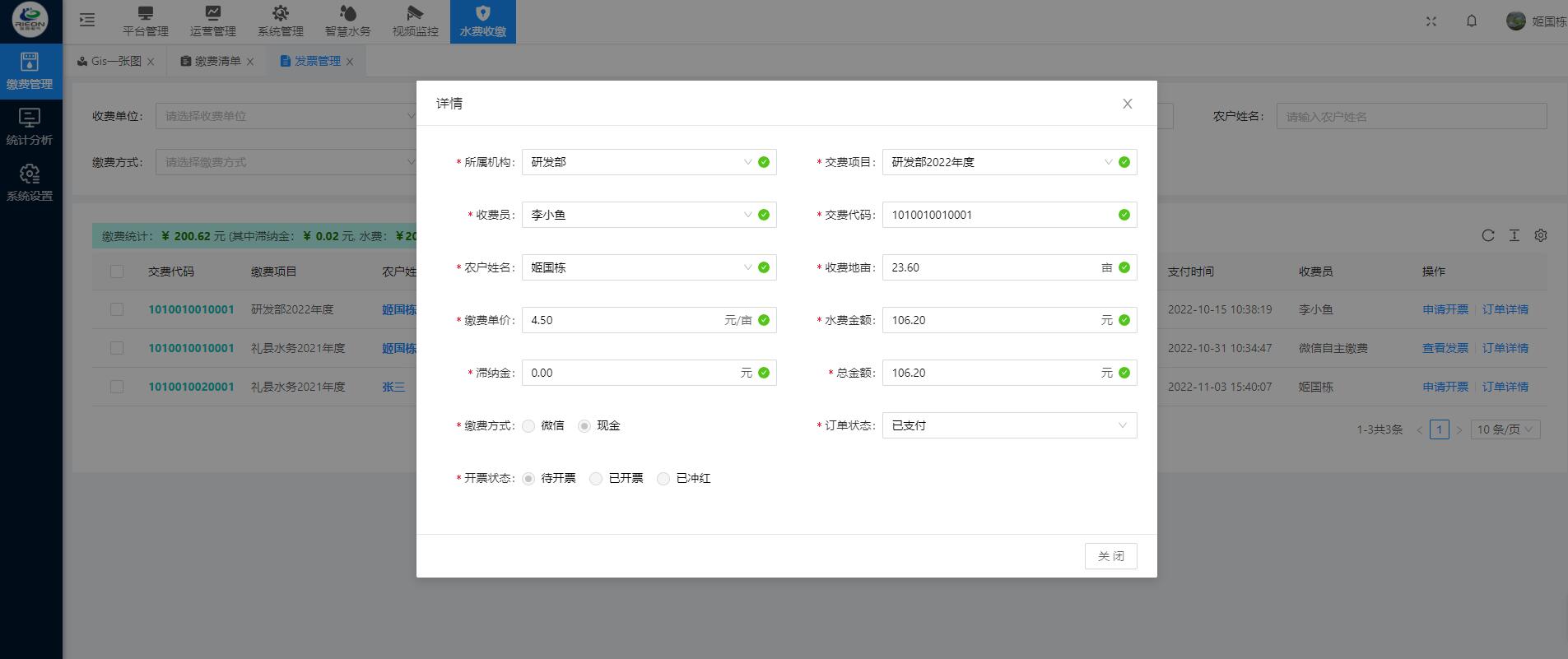 灌區(qū)收費(fèi)系統(tǒng)運(yùn)用計(jì)算機(jī)應(yīng)用技術(shù)以及相關(guān)的專用分析軟件和通訊網(wǎng)絡(luò)所組成的一個(gè)綜合性的收費(fèi)系統(tǒng)。通過對流經(jīng)用水戶的灌溉 時(shí)間以及流量的輸入,計(jì)算出該用水戶的水費(fèi),生成收費(fèi)賬單提交至上級審核 ,審核通過即可在線繳費(fèi)以及他人代繳功能。管理單位可以在手機(jī)和電腦網(wǎng)頁上同步查詢相應(yīng)的用水量以及繳費(fèi)情況。